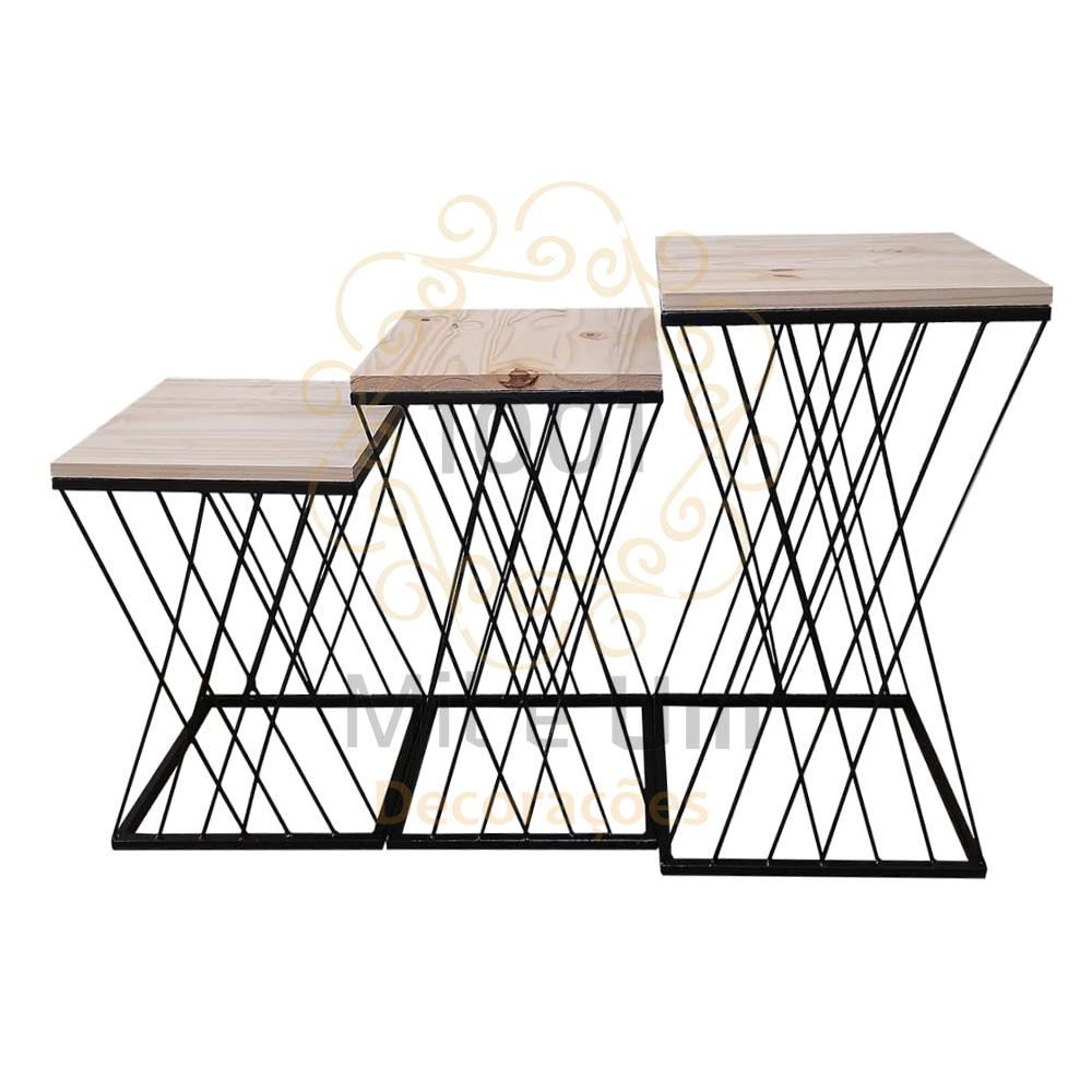 Trio de Mesas X Medidas 70x40x40 cm 60x35x35 cm 50x30x30 cm Cores disponíveis Preto, Dourado e Rose Gold.